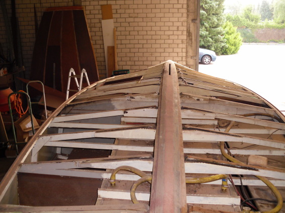 Böse Überraschung in Ufernähe: Im Wasser unsichtbare Pfähle der Uferbestigung hatten einen betagten Jollenkreuzer im Unterwasserschiff nahezu „perforiert“. Die alte Rumpfhaut hatte den punktuellen Belastungen nicht mehr Stand gehalten und wies mehrere faustgroße Löcher auf. Zum Glück konnte der Eigner sein Boot vorm Sinken bewahren und noch rechtzeitig an Land bringen. Der Ablauf der Reparatur ist unter -Bootsbauservice – im Einzelnen beschrieben.